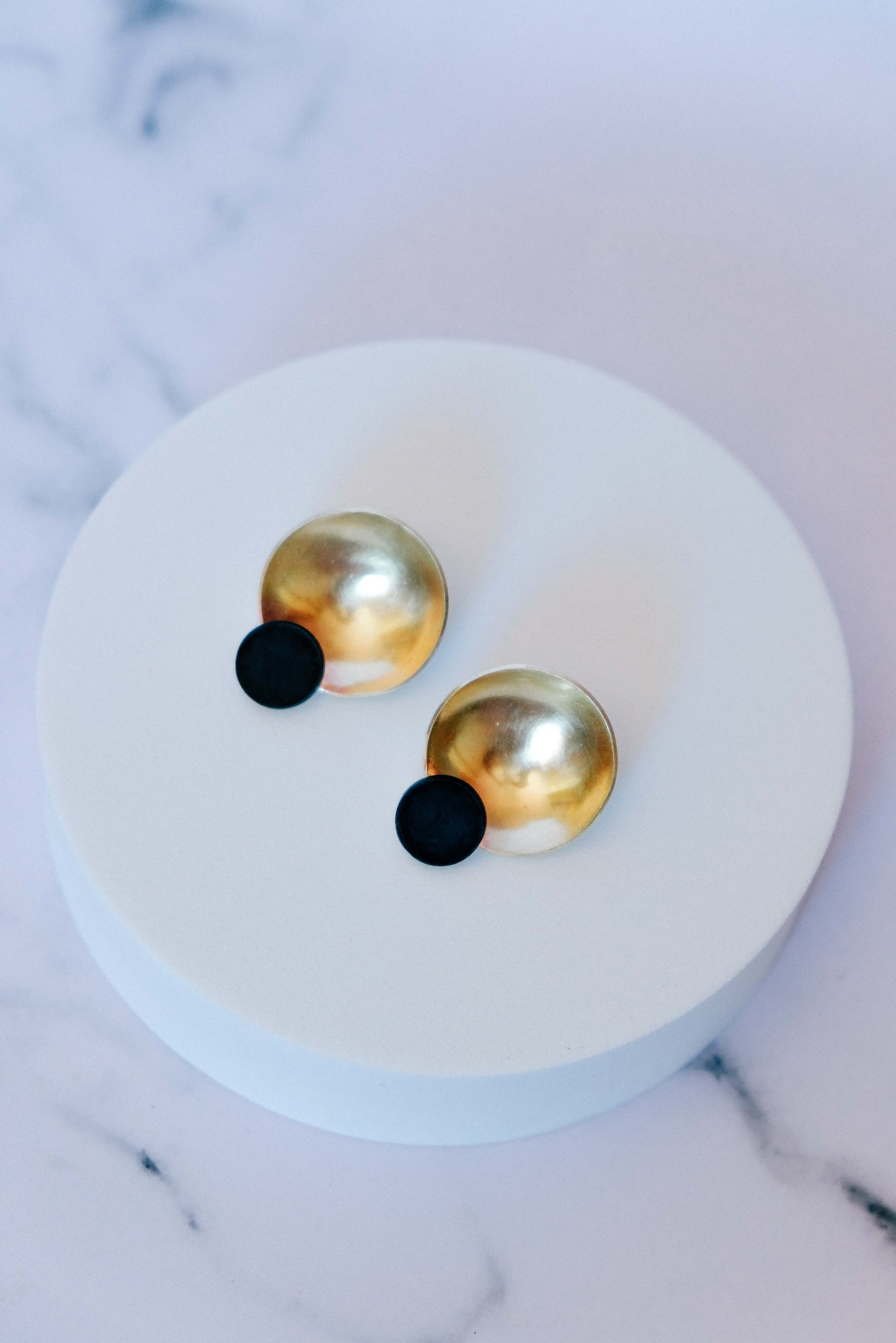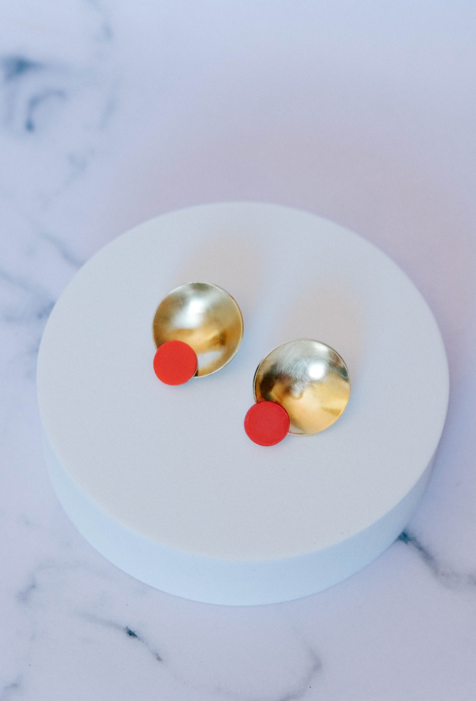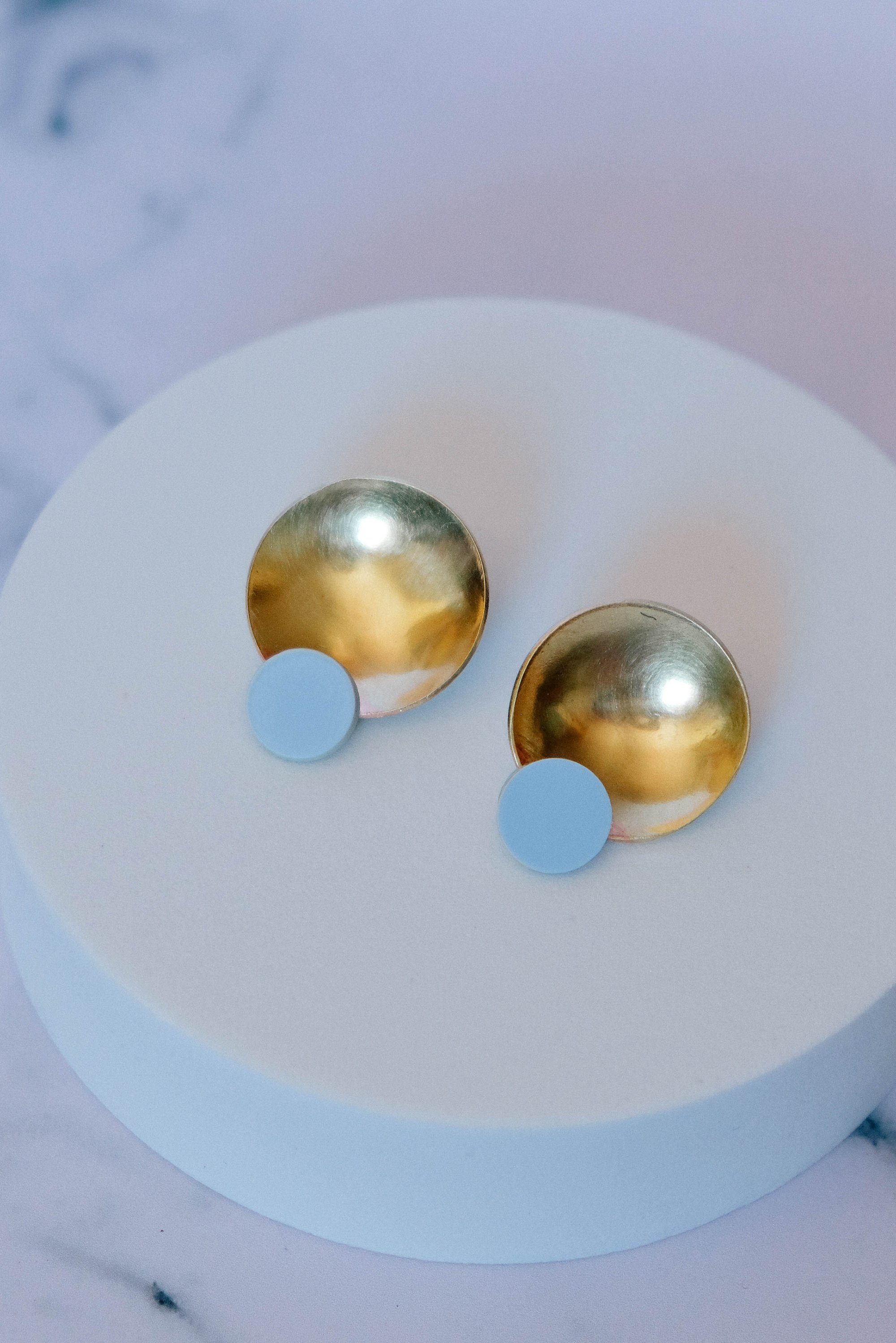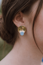 Pendientes redondos hechos a mano en latón y acetato, ligeros y muy favorecedores. Una pieza sencilla pero con fuerza visual, pensada para aportar luz, color y un punto contemporáneo al look.