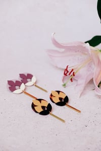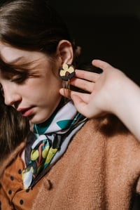 Acetato dorado, negro y carey forman esta bonita combinación, la parte inferior móvil es de latón lacado y el enganche de PLATA 925 ML