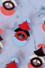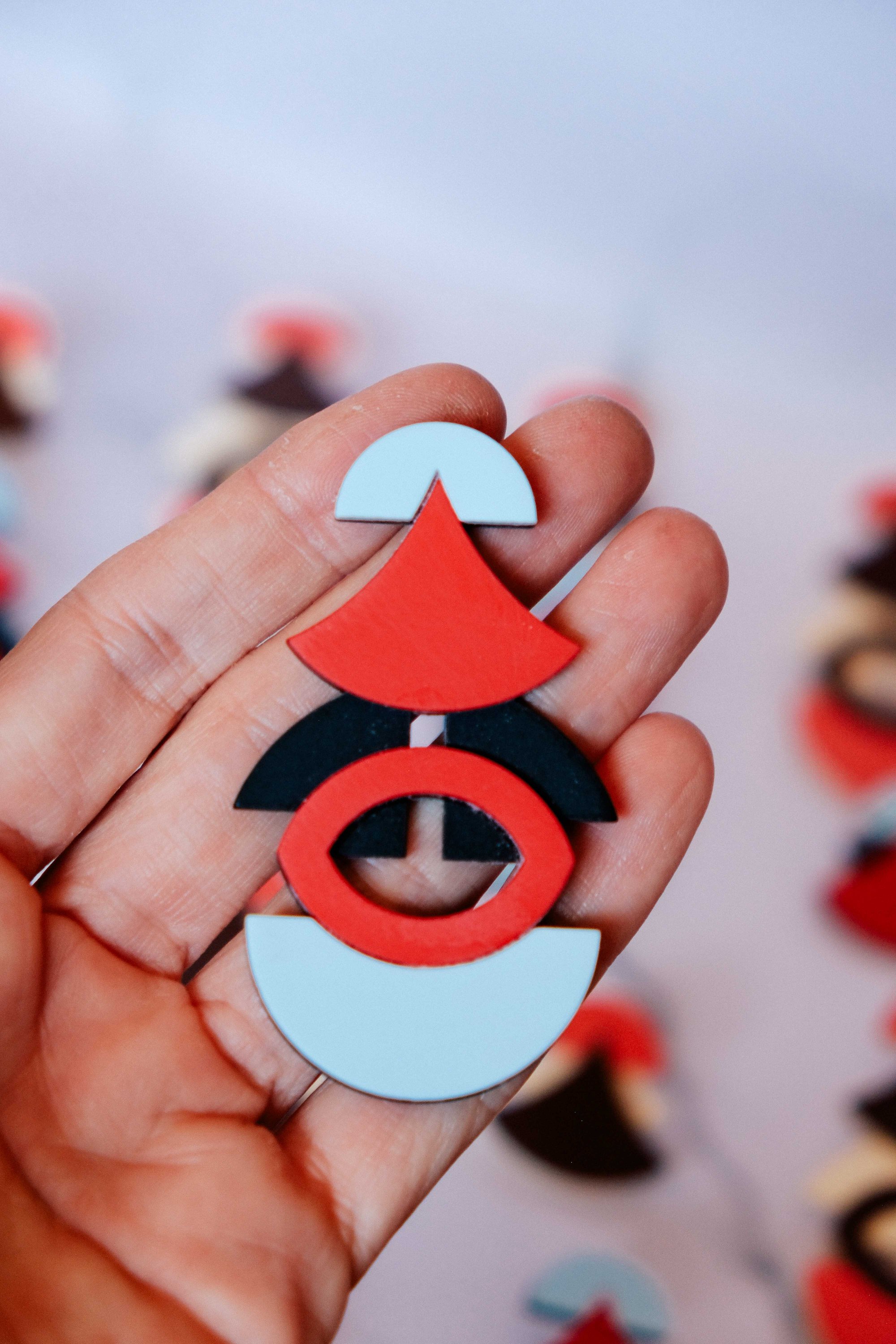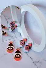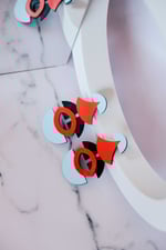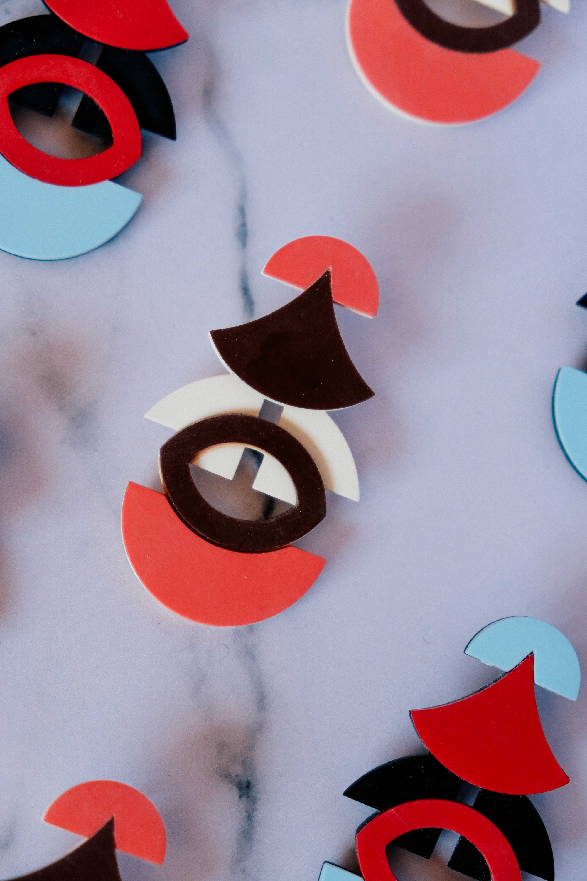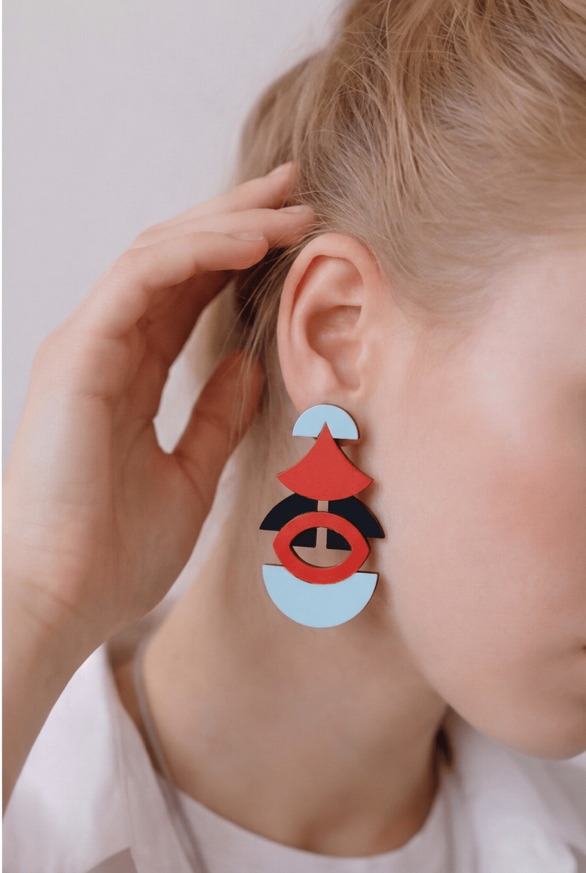 Pendientes geométricos maxi de acetato hechos a mano, ligeros y con un diseño contemporáneo muy especial. Una composición modular de curvas, semicírculos y color que convierte la pieza en un pequeño ensamblaje escultórico.