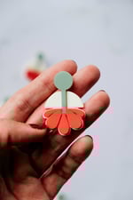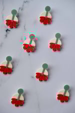 Un diseño floral reinterpretado en clave gráfica. Los pétalos rojos recuerdan el estilo fantasioso y vibrante de las flores que aparecen en las pinturas de Florine Stettheimer, siempre llenas de vitalidad y un toque teatral. Perfectos si te gustan las piezas con aire artístico pero delicado.